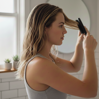 Step 1 . Remove excess hair, products and sebum off hair brush with a wide tooth comb or your fingers.
